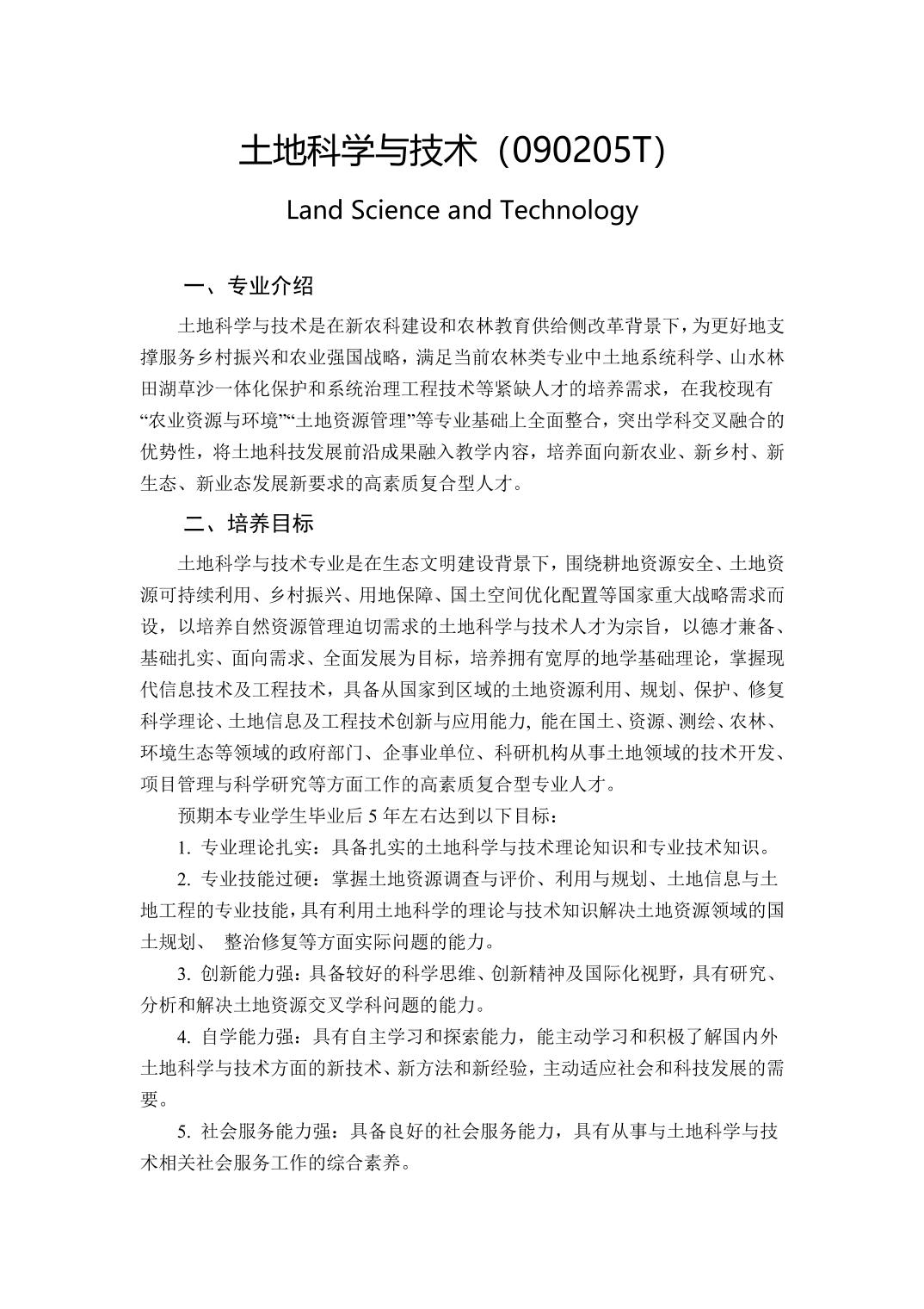 土地科学与技术专业