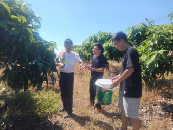 盛夏时节,海南酷热难耐。公司党委委员、副经理彭建伟教授带队前往海南,开展为期4天的研究生党员社会实践活动,参加本次活动的有beat365手机版官网入口钟舒怡等三位在读研究生、海南省热带农业科公司海口实验站丁哲利副研究员以及海南大学植物保护公司李培征教授,本次活动围绕农业绿色发展,重点调查和了解海南芒果、槟榔等热带果树的生产现状、养分管理和果园土壤状况等。