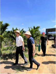 7月1日,一行人返回到乐东黎族自治县,上午前往了抱由镇工农小学附近的芒果基地进行了考察、观察分析了果园管理状况和树势生长情况,下午在海南海之润农业科技有限公司董事长赵科明德陪同下,前往了该公司建在乐东抱由镇礼乐村的槟榔种植基地,考察、参观了公司槟榔园的管理、正在建设的水肥一体化设施以及该公司生产的三棵树牌槟榔专用肥应用效果等,并对公司在海南的发展提了合理的建议。7月2日上午小队成员前往了乐东九所镇,考察了两个芒果园,并于2日下午返回公司,圆满完成了本次实践活动。