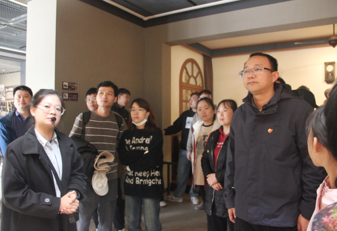 随后,师生党员们跟随讲解员参观了解伟大戏剧家田汉先生的事迹和文学艺术创造成就。一幅幅革命历史图片,一页页泛黄的书稿,一件件厚重革命历史文物,都在讲述着田汉追求理想和光明的一生。田汉先生一生创作了100多部剧作,近2000首歌词、诗词,留下了非常丰厚的文化艺术遗产。他以“忠勇无畏的无产阶级文化战士”的气概,团结和领导广大进步文化工作者,以文艺作品为武器,为国家独立和民族解放不懈奋斗。他深沉的爱国主义精神、坚定的时代担当和执着的艺术追求,深深感动了在场的每一名党员。