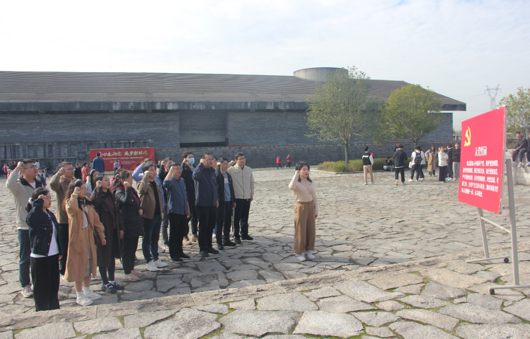 在国歌广场,党支部书记张振华同志为全体党员上党课,勉励大家传承“国歌精神”,勇担历史使命,为中华民族的伟大复兴贡献青春力量。在国旗广场的入党誓词前,“我志愿加入中国共产党,拥护党的纲领,遵守党的章程......”,伴随着铿锵有力的誓言,全体党员高举右手、再一次庄严宣誓。坚定铿锵的誓词,表达了大家坚定不移的理想信念和矢志奋斗的坚强决心。