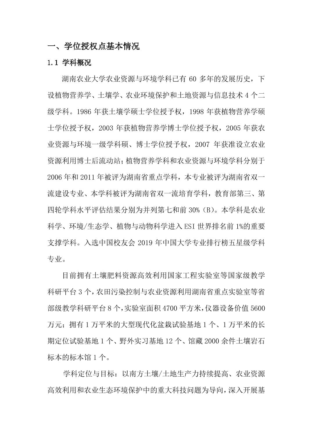 农业资源与环境学位授权点建设年度报告(2021 年)
