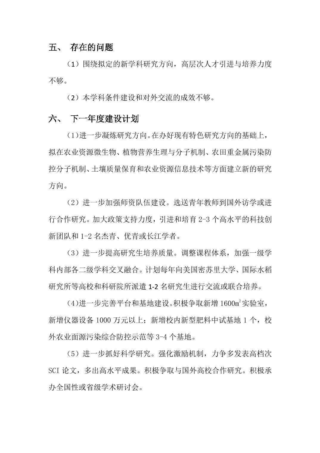 农业资源与环境学位授权点建设年度报告(2020 年)