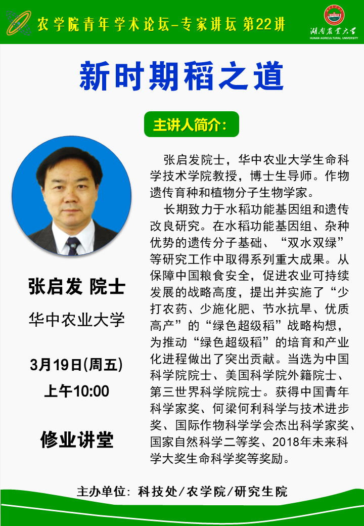 农公司青年学术论坛-专家讲坛 第22讲-新时期稻之道