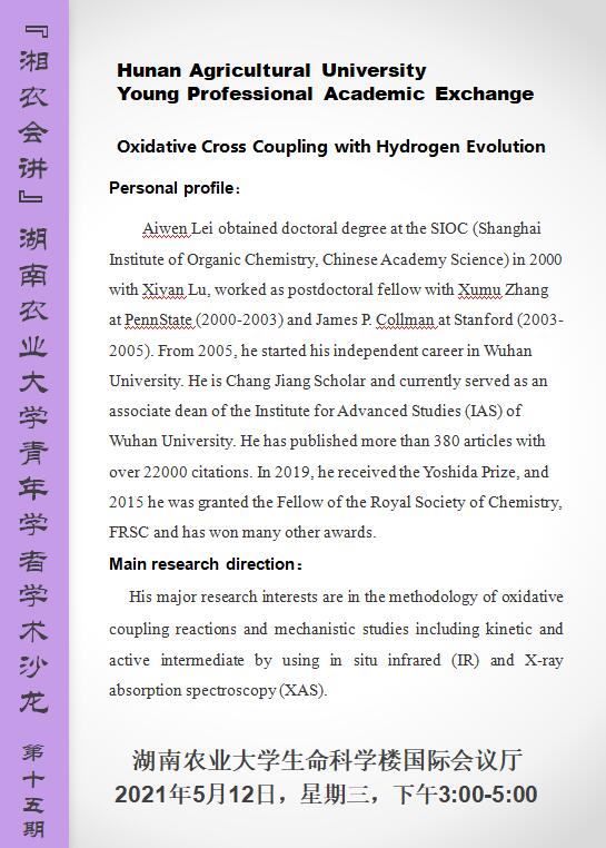 beat365手机版官网入口青年学者学术沙龙第十五期--Oxidative Cross Coupling with Hydrogen Evolution