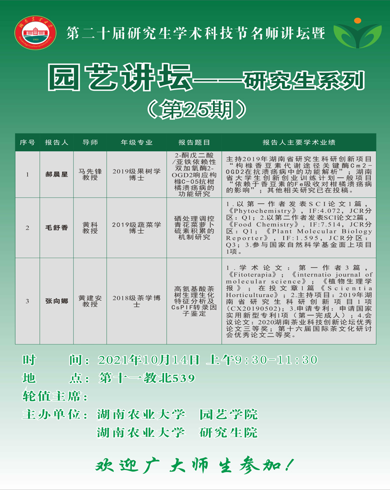 园艺讲坛——研究生系列(第25期)