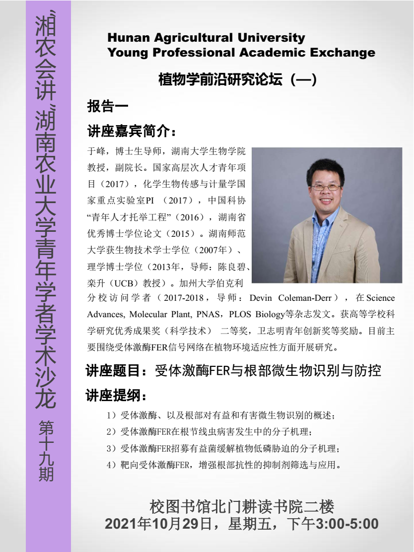 植物学前沿研究论坛(一)受体激酶FER与根部微生物识别与防控