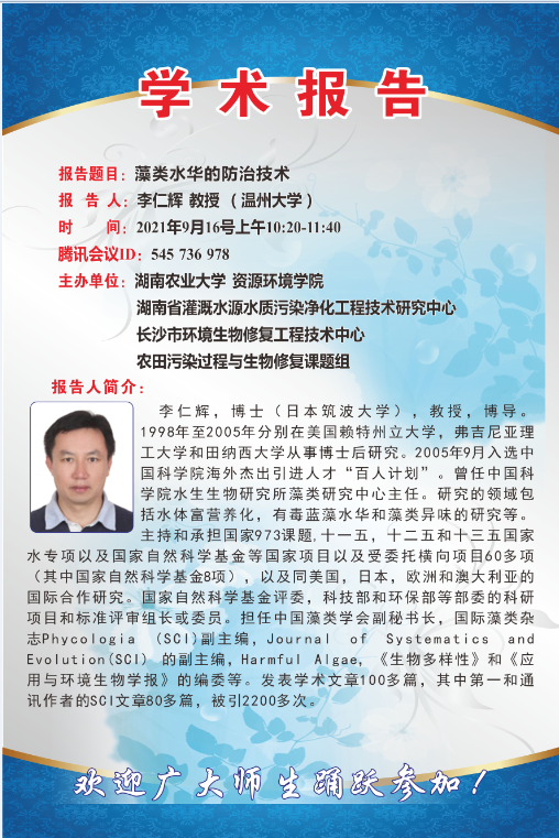 藻类水华的防治技术——李仁辉教授学术报告