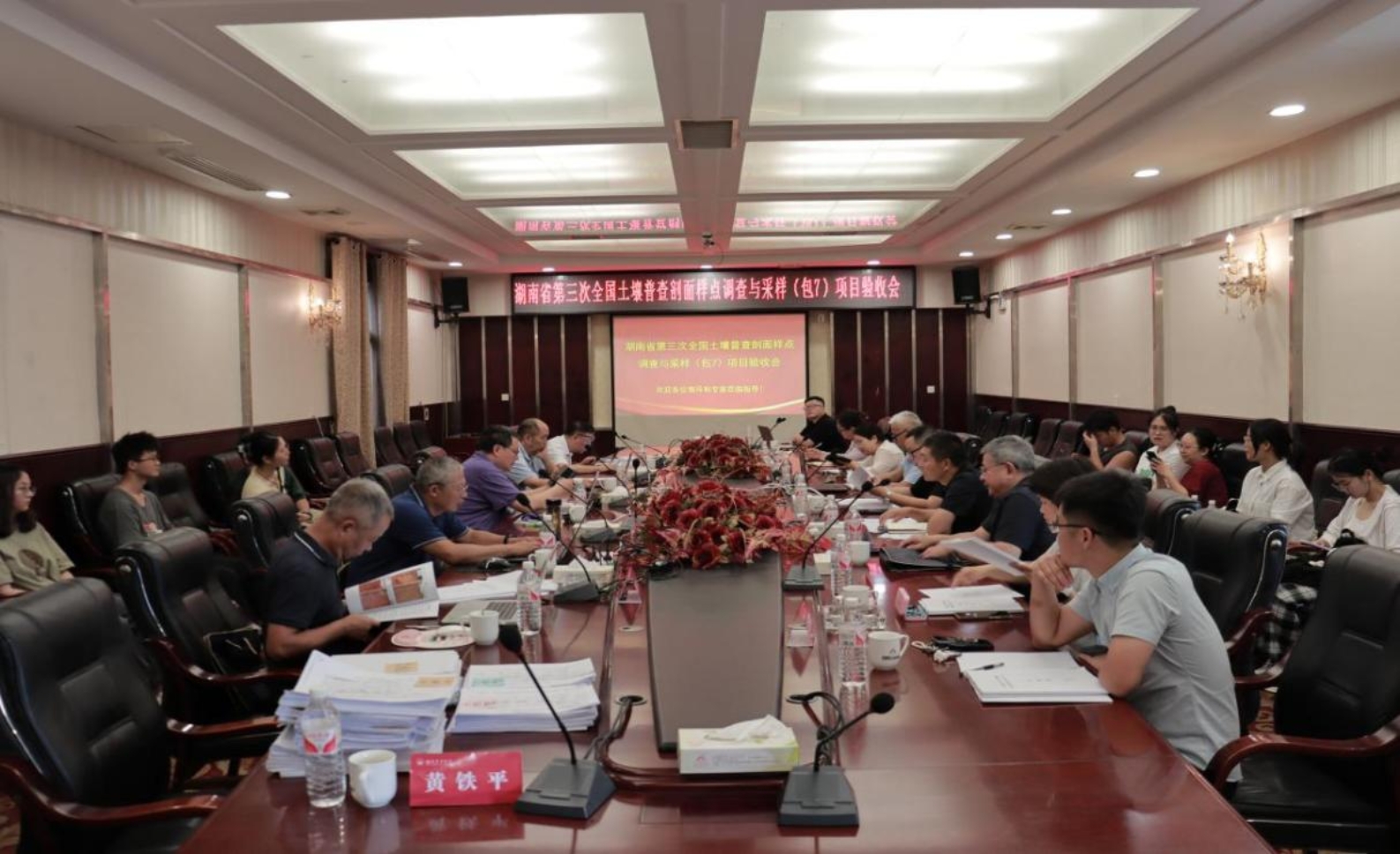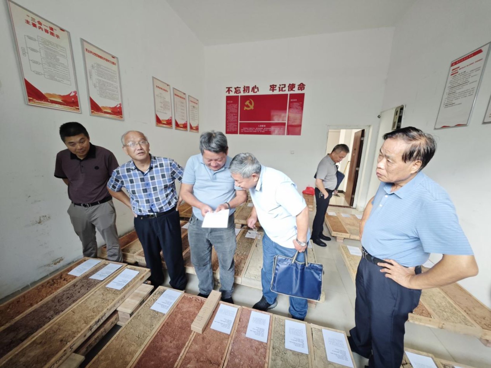 2024年8月20日,湖南省土壤普查办专职副主任黄铁平、外业组组长阳小民陪同国家级专家中国农业科公司农业资源与农业区划研究所研究员龙怀玉、beat365手机版官网入口教授张扬珠等一行对本项目整段标本采集与存放情况进行现场抽检,专家们对本项目的采样规范性及样品存放情况表示高度肯定。