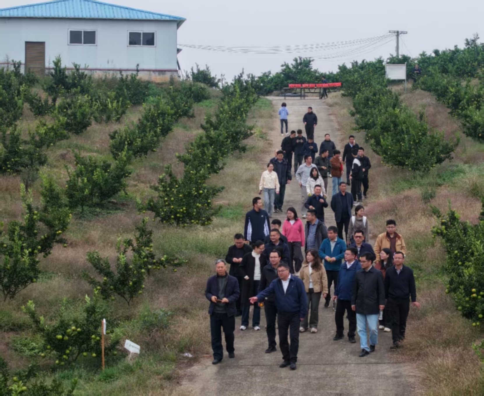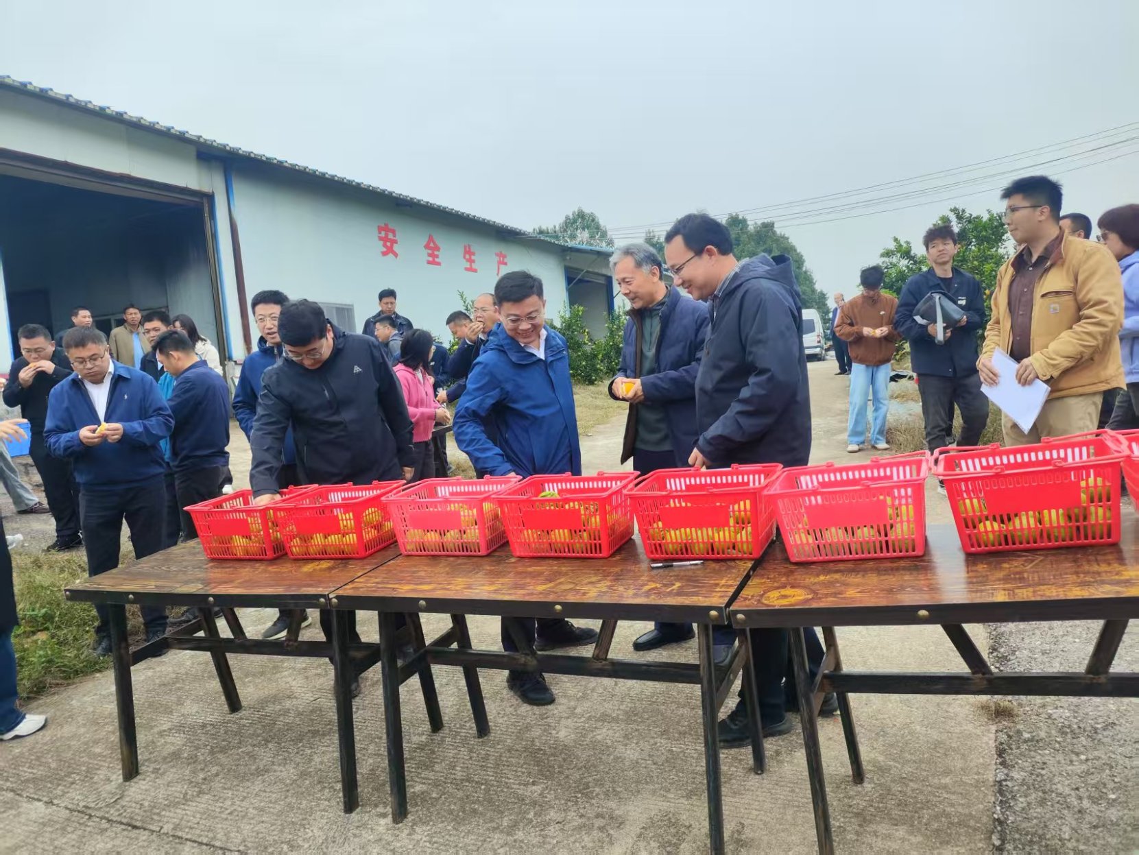 27日上午,与会专家一行前往祁阳红壤实验站,实地观摩了水稻和柑橘田间示范现场。在段英华研究员与黄晶副研究员的主持下,各技术负责人通过展板展示、实物讲解与田间操作演示,系统呈现了复合菌剂、纳米酶、高温灭活装备及专用肥料等多项关键技术成果。张振华经理在观摩中对该课题的组织与进展给予高度评价。他指出,课题实施组织严密、推进扎实,充分展现了跨区域、多单位协同攻关的科研优势,对南方红壤区农业可持续发展具有重要的示范意义。