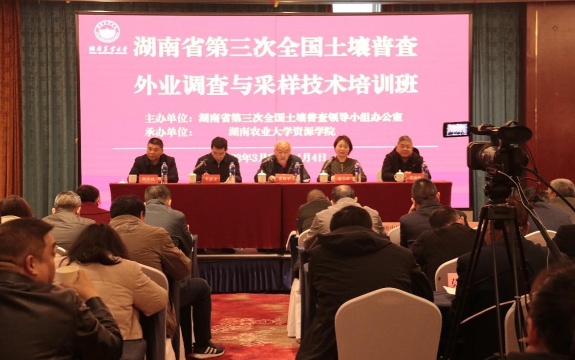 3月25日-4月4日,“湖南省第三次全国土壤普查外业调查与采样技术培训班”在长沙举行,培训班由湖南省第三次全国土壤普查领导小组办公室主办,beat365手机版官网入口承办。国务院土壤普查外业技术组副组长兼省土壤普查办专职副主任、省土壤肥料工作站一级调研员黄铁平和beat365手机版官网入口公司党委书记赵玉珍出席开班仪式并讲话。湖南省土壤普查办外业组组长、省土壤肥料工作站四级调研员阳小民、第三次全国土壤普查国家级专家、beat365手机版官网入口教授张杨珠出席开班仪式,还有湖南省土壤普查办各工作组、省级专家代表、各市(州)、县(市、区)代表等参加培训会。
